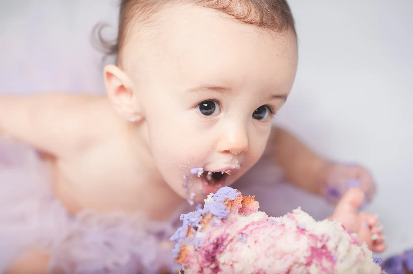 Baby Aaliyah has had a lot of photo sessions leading up to her first birthday, and each time she is a natural! We are always shocked at how quickly time flies by, we photographed Aaliyah's newborn photos and already a year has passed. With the first birthday "Cake Smash" growing in popularity, we of course had to let her get messy in her very first birthday cake! What a cutie she is, we wish her a Happy Birthday and many many more cakes!